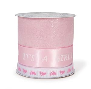 Pack of three attractive pink baby shower ribbons on one spool Use for wrapping or decorating Three yards per style Widths: 1-1